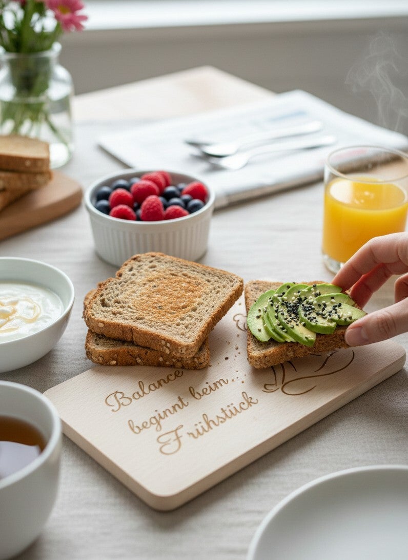 Holzbrettchen „Balance beginnt beim Frühstück“ – perfekt für den Start ins neue Jahr